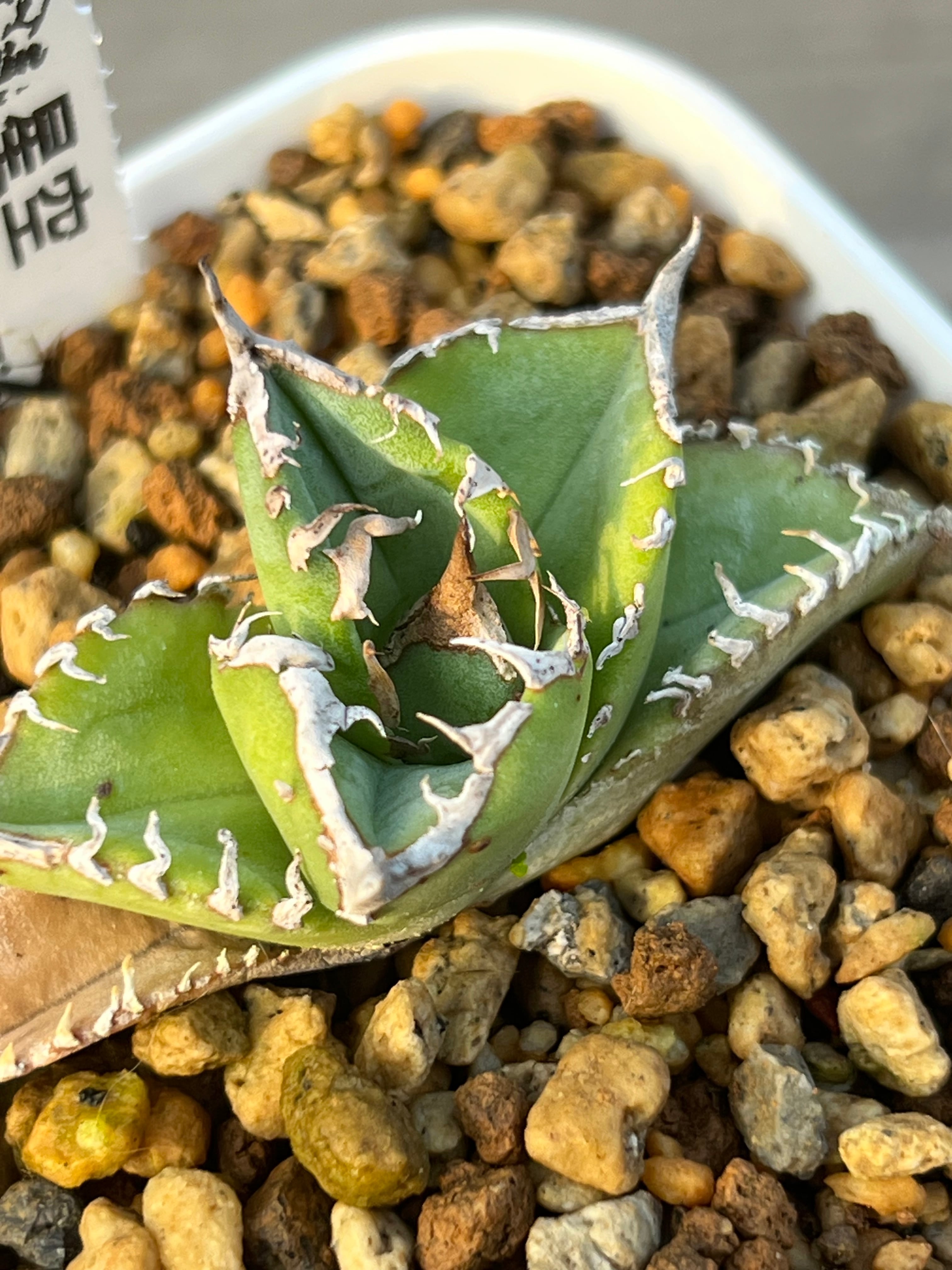 【 Agave titanota 星空】 人気のブツブツタイプ。 台湾の有名ナーセリー、Berlinからの新着株のご紹介です。 KOBE AGAVE SHOP、お久しぶりの台湾ネームド株の販売となります。 撮影日 2025.07.13 抜き苗での発送を予定しております。 またスリット鉢に入った株は 鉢のままをご希望のお客様は備考欄より、鉢のまま希望をお伝えください。
