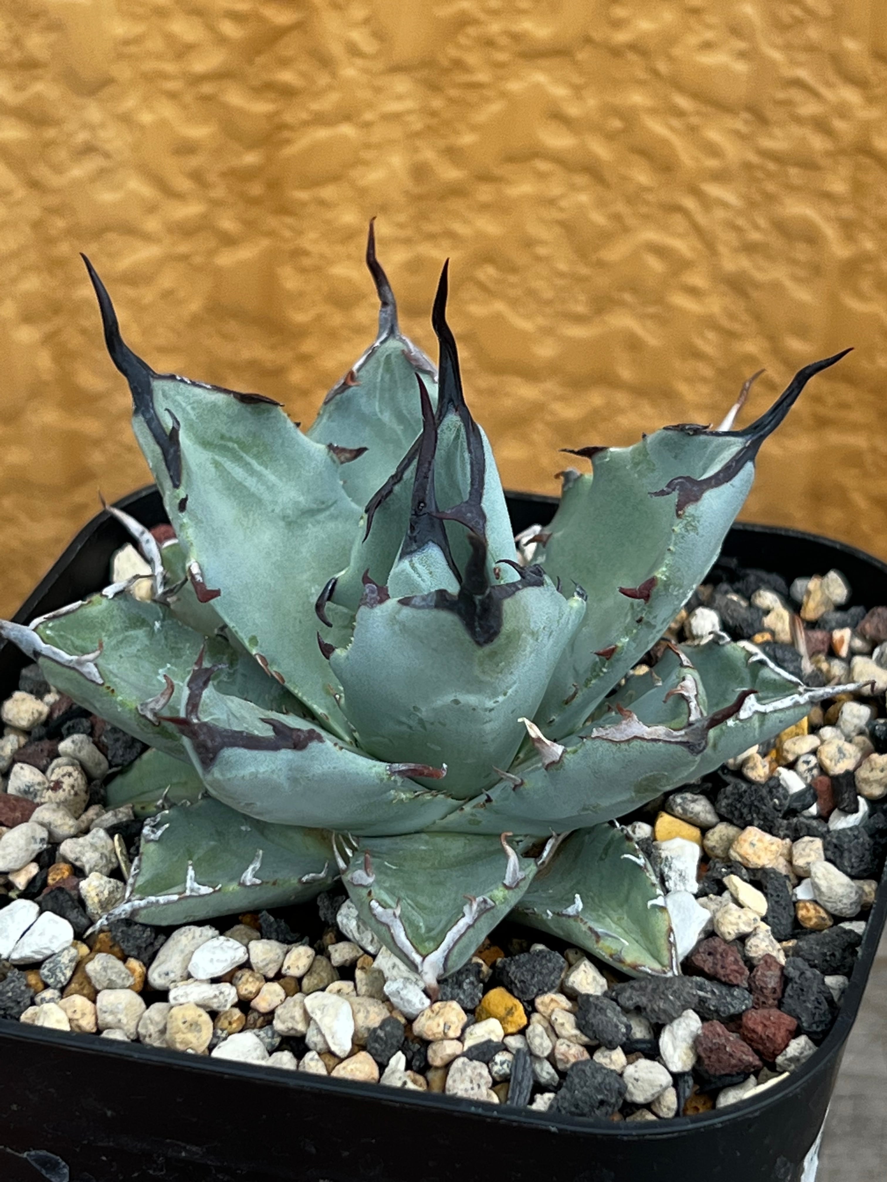 青みが強く棘も黒く肉厚でコンパクトな株です。